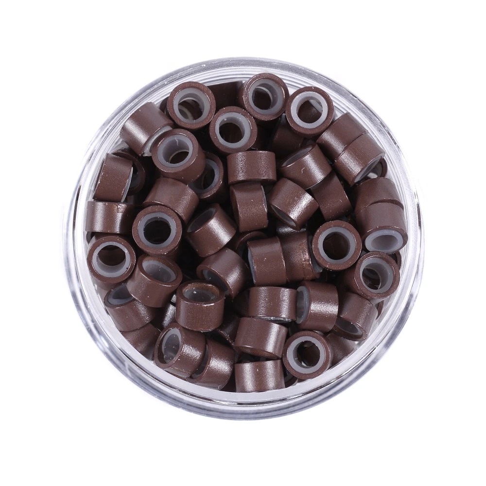 Micro Rings με Σιλικόνη για την τοποθέτηση τρέσας ή extension σε καστανό σκούρο χρώμα. Η συσκευασία περιλαμβάνει 1000 τμχ. Οι διαστάσεις του προϊόντος είναι 5.0×3.0x3.0mm (Εξωτερική διάμετρος-Εσωτερική διάμετρος-Μήκος).